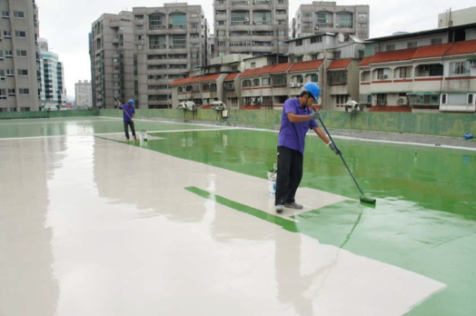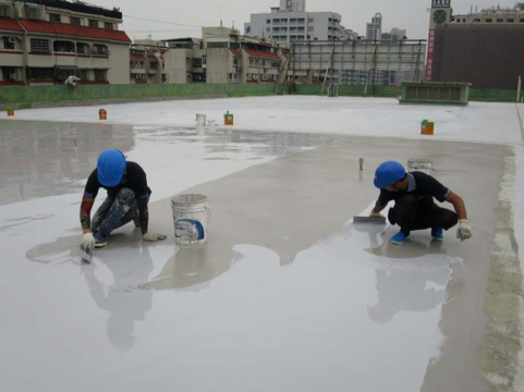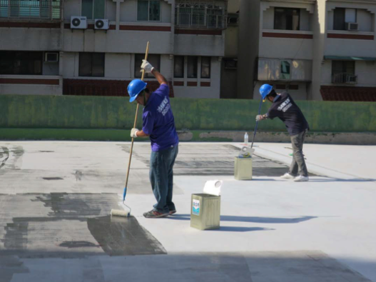 若使用的是PU聚胺脂塗料,必須先將地基整平以免地面孔隙或落差過大影響防水性能。素地面處理好,刷上PU底漆、黏貼上通氣墊層、裝設上透氣筒後再塗上兩層PU塗料,最後再刷上PU面漆就完成了。