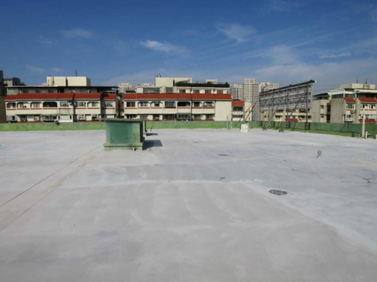 密著通氣工法屬於塗膜防水工法,雖然費用較瀝青防水、卷材防水高但卻有無接縫、即使屋面有障礙物也可以使用、長期使用不會斷裂或鼓脹等優點,非常適合用在屋面狹窄障礙物較多的公寓或大樓。