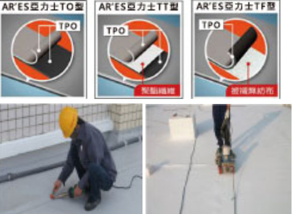 亞力士TPV / TPO防水卷材適用於各類工程,例如:屋面防水鋪設,因TPV / TPO防水卷材的質量輕、具耐磨性與耐刺穿性特點,經織物增強後,會使抗性更強,達到更佳的強韌優點。亞力士TPV / TPO防水卷材提供您更強韌、更具延展性的防水卷材選擇!
