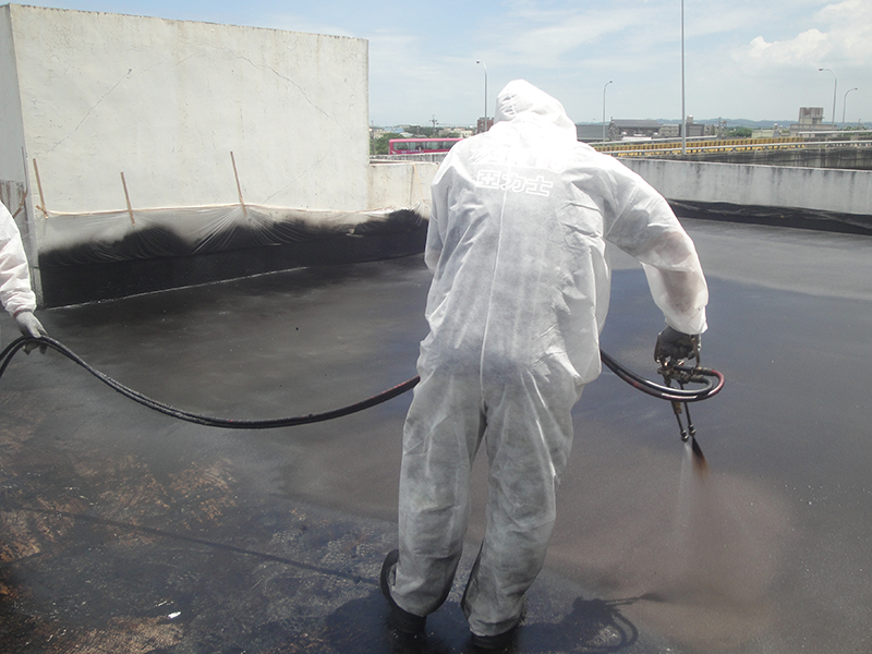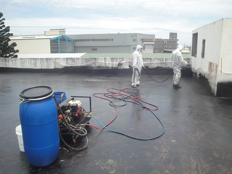 - 不能在雨、雪天或被水浸泡的基面上施工,5級以上大風不得施工,噴塗24小時內如有氣泡產生屬 於正常現象,兩天後塗膜會收水、排除氣泡,恢復平整。噴塗後應注意成品保護。