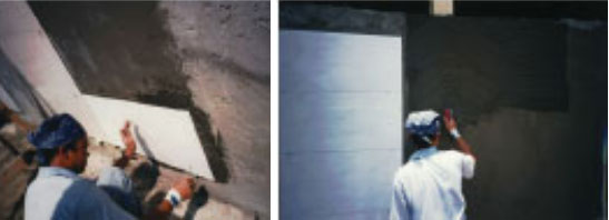- 可作为外牆拉皮磁砖不剔除之接着整平层。