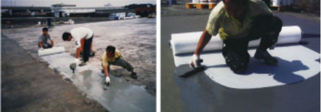 - 可作为複合式防水工法之前置防水层,可搭配抗裂夹网布或面层涂佈弹性防水涂料等防水材料。