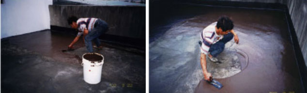 - 建筑物屋顶、地下室外牆、中庭花园等之防水涂佈。